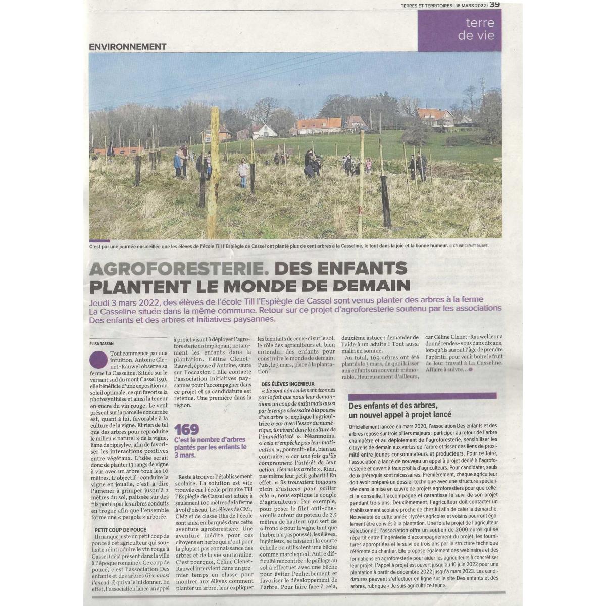 Les articles de presse de La Casseline à CasselDécouvrez les articles de la ferme et de l’association dans le Nord12 Novembre 2022Article réservé aux abonnés dans Lavoixdunord On parle de nous à 22mn45s au début de l'interview avec Céline CLenet de La CasselineA la folle course d'obstacles de Cassel, un parcours spécial collégiens pour tout apprendre des abeillesFrappadingue : une course de collégiens dédiée aux abeilles à la CasselineDes premières vendanges à Cassel, surtout pour le « symbole »La Casseline : meilleure ferme bio d'Europe ?Fin de la partie pour le nid de frelons au jardin public - 24 août 2022Samedi, les coureurs et les spectateurs du Cassel Urban trail seront choyés - Août 2022Deuxième édition de la fête du Pissenlit - Avril 2022Des enfants plantent le monde de demain - 18 Mars 2022Bientôt des vignes sur les flancs de Cassel avec du vin rouge à la clé - 9 marsLa voix du nord , le 9 mars, des vignes à CasselDes élèves et des arbres - Mars 2022la casseline fabrique du paysage - Décembre 2020La Casseline en finale d'un concours européenCéline Clenet et La Casseline finalistes du concours européen des fermes bio |